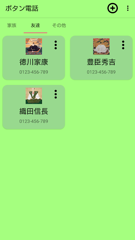 Avec une conception facile à comprendre, il peut être utilisé par des personnes (enfants, personnes âgées, personnes âgées) qui ne maîtrisent pas bien les smartphones. Il s'agit d'une application téléphonique simple.