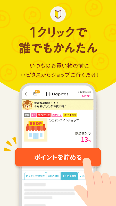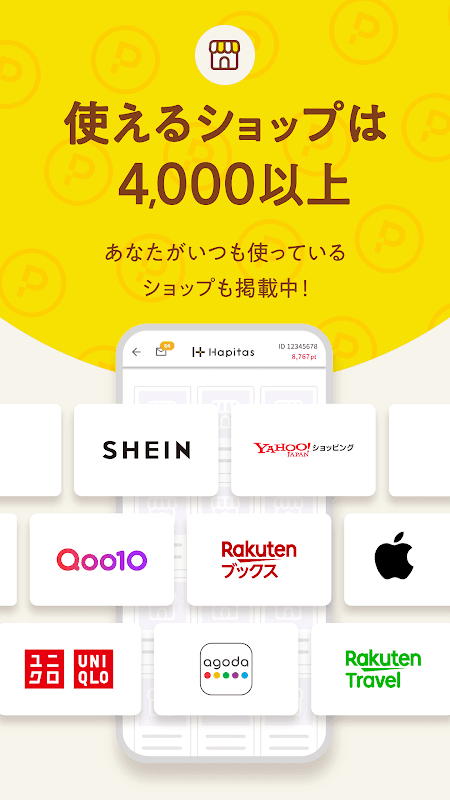 Cumulez des points shopping et des points Hapitas en seulement 10 secondes ! Échangez vos points contre de l'argent ou des chèques-cadeaux sans frais !