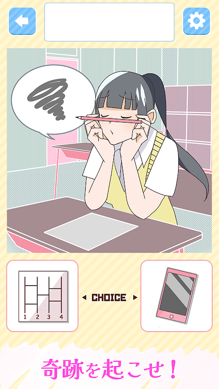 今回の簡単タップゲームは「ミラクル」をテーマに女の子の日常を選択しよう!