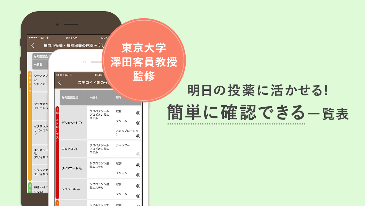 Cette application a été développée avec la coopération de l'École supérieure des sciences pharmaceutiques de l'Université de Tokyo.