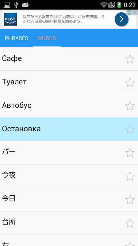 覚えたい単語やフレーズは長押しでお気に入りに登録できます。