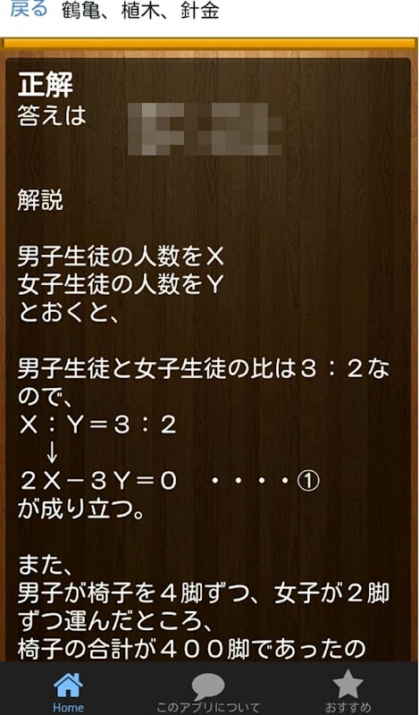 この無料のアプリで出題しているのは、鶴亀算や仕事算、食塩水の濃度算
