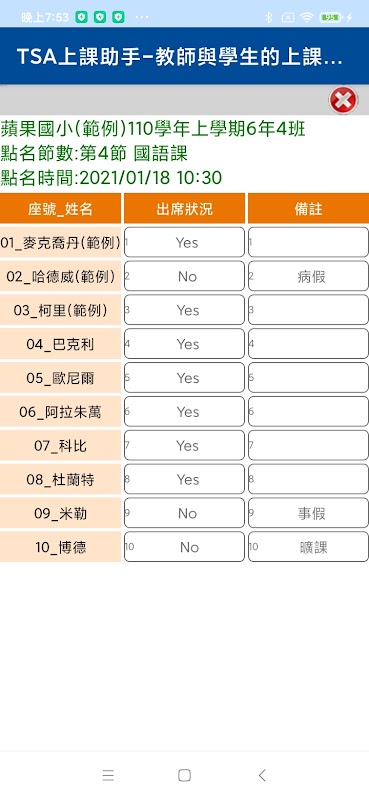 點名管理:課堂中進行點名,還可以註明未出席原因,可加入病假、事假等。
