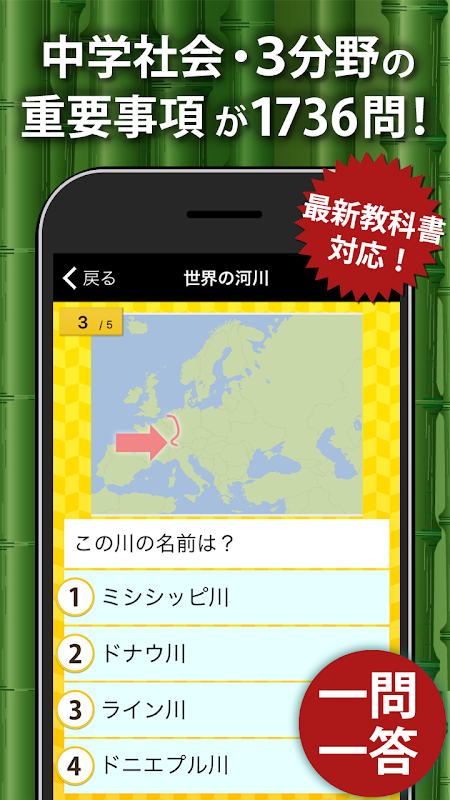 最新の学習指導要領に対応。一問一答と演習問題、全1736問収録の人気の本アプリ「中学社会 地理・歴史・公民」をぜひこれからもご活用ください!