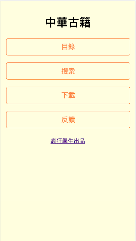 本應用是一個中國古代書籍的圖書庫,務求收集盡可能多的中國古典書籍。帶有字體縮放、書籤、評論、字典和聽書功能(支持國語和粵語)。目前收錄古籍約12億字(《四庫全書》約8億字),以經史子集小說分類,包括四書五經、大藏經、道藏、四大名著等。