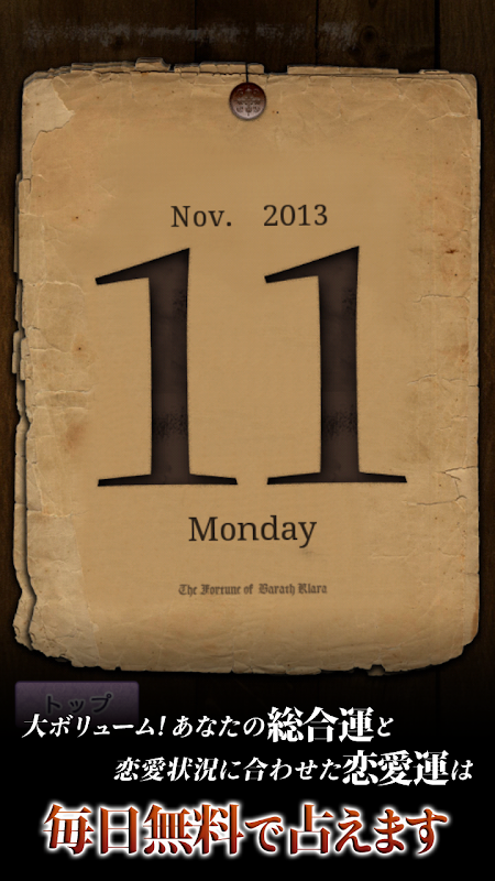 総合運と恋愛運の2つの運勢がチェックできる「今日の運勢」は、完全無料で毎日お楽しみいただけます!