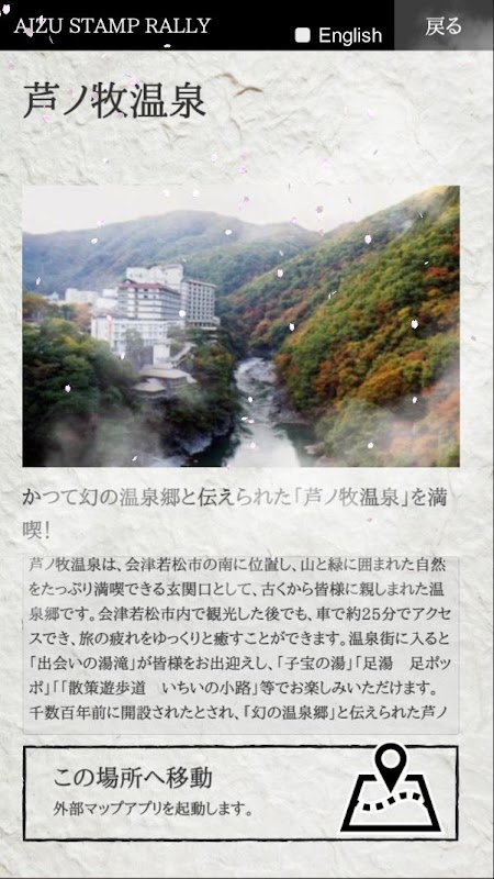 このアプリはその名所や史跡をめぐり、会津の歴史を感じながら各所でスタンプを集めるスタンプラリーアプリです。登録された48箇所のスタンプを押しながらその場所のうんちくを学びどんどん会津が好きになる。おすすめ観光スポットが網羅されたスタンプラリーをコンプリートすればもうあなたは会津通です。