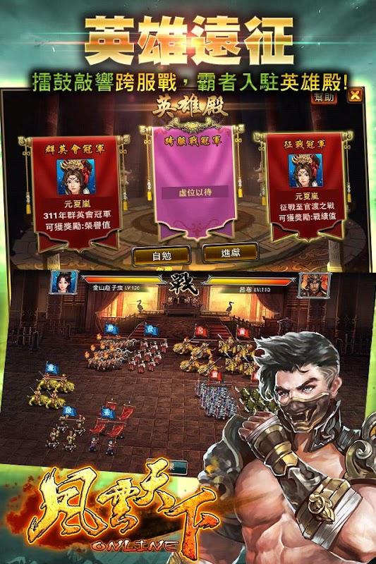 蒼天已死、天下大亂,英雄豪傑成為君王的最佳機會!最佳策略、權謀手機遊戲大作,跟著劇情一窺三國時期呂布大戰虎牢關、曹操兵敗赤壁、孔明草船借箭等經典歷史事件!