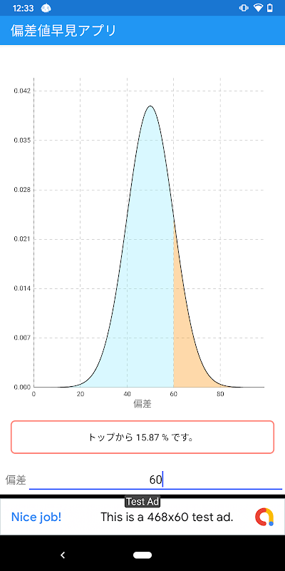 このアプリは、偏差値から簡単に自分のいる割合を見るアプリです。
