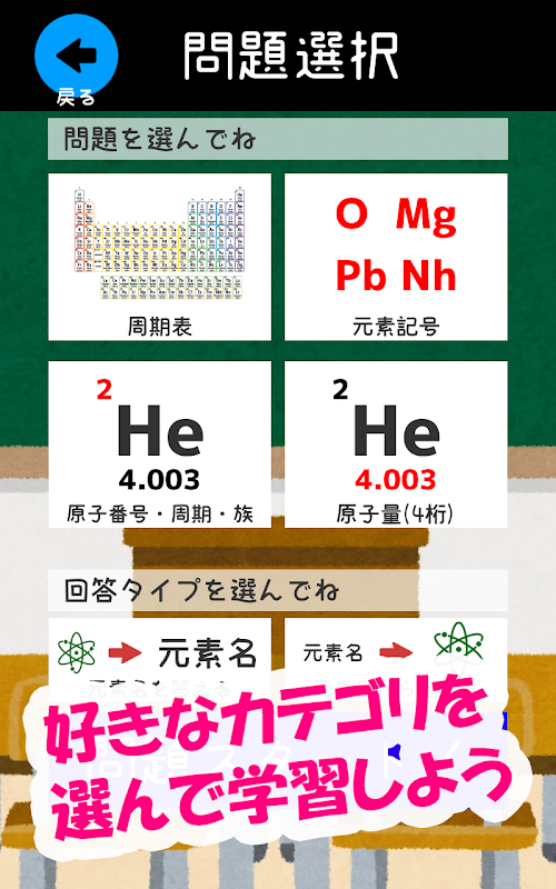 元素記号をおぼえよう:理科化学の学習に便利な学習クイズアプリ