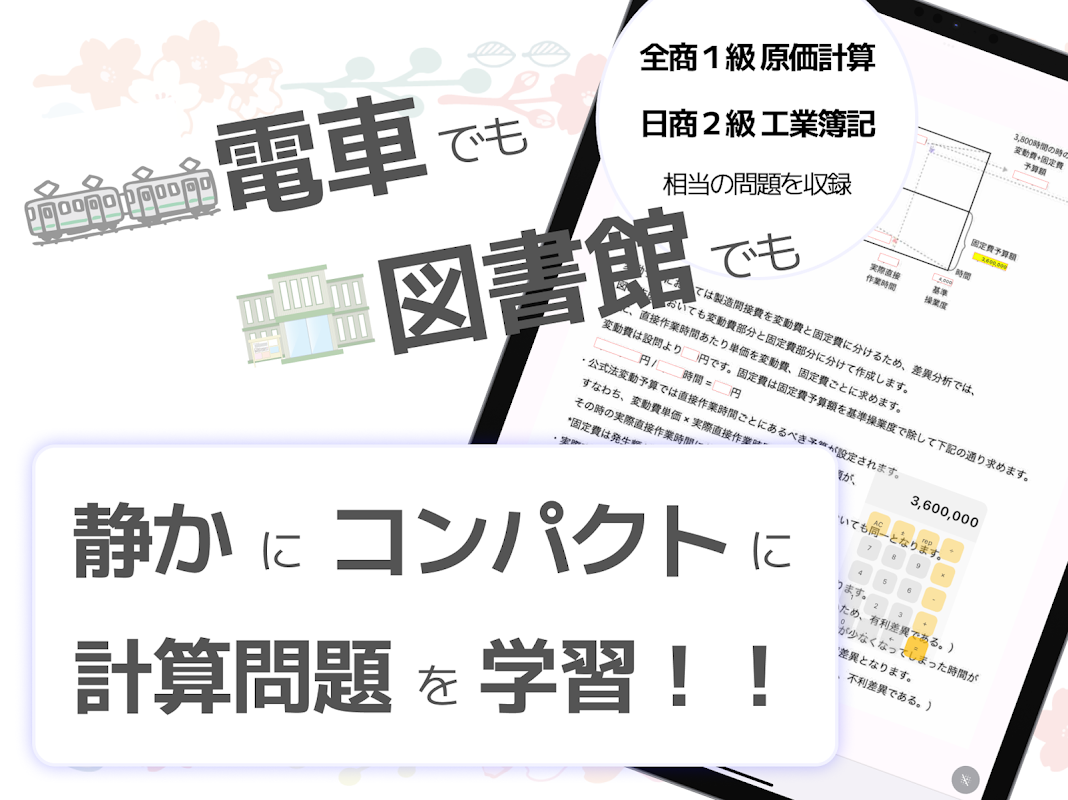 Apprenez les problèmes de calcul pour la comptabilité analytique Zensho Bookkeeping Grade 1 et la comptabilité industrielle Nissho Bookkeeping Grade 2 facilement et silencieusement à l'aide de la calculatrice intégrée à l'application dans le train ou à la bibliothèque. Apprenez n'importe où sans vous fier à des textes papier compliqués ou à des ensembles de problèmes.