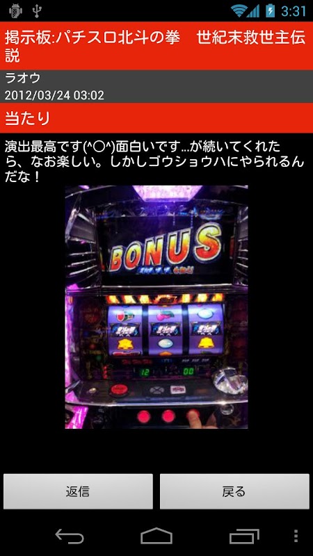 パチンコ/パチスロのユーザー間でのコミニケーションが可能です。プレミア演出の画像や、大当たり画像。貴方の携帯で撮影した画像を閲覧したり、投稿することも可能