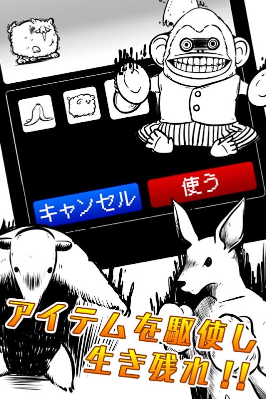 手に入れたアイテムを「使う」でうまく使い生き延びましょう。