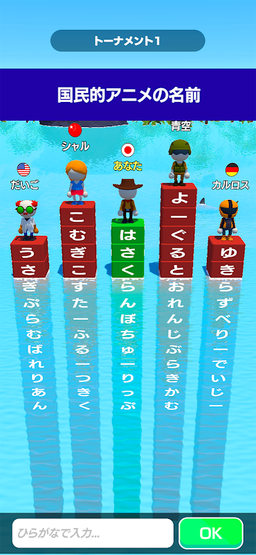 お題に対してできるだけ長いワードを答えてサバイバルバトルを勝ち上がろう!