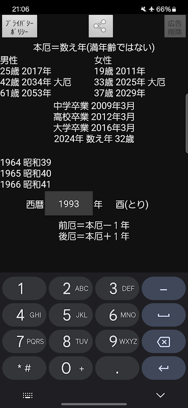 Informations 厄年計算男性女性年齢和暦西暦計算機 APK