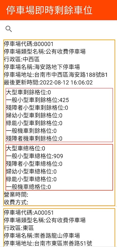 Informations 台南市停車空位查詢 Tainan Parking APK