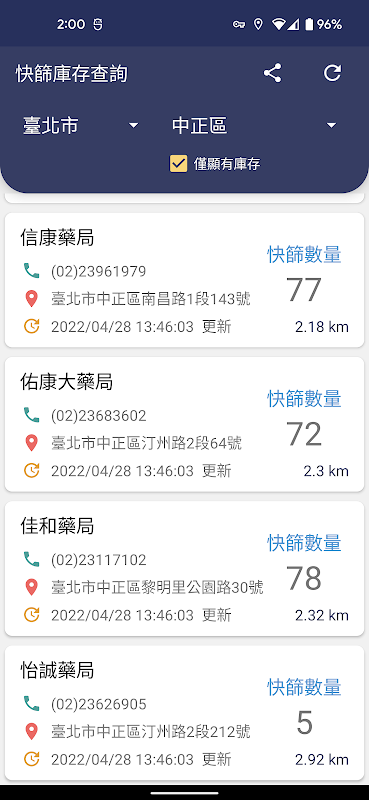 台灣快篩庫存查詢 - 快篩實名制、藥局查詢、即時庫存 1.2.0
