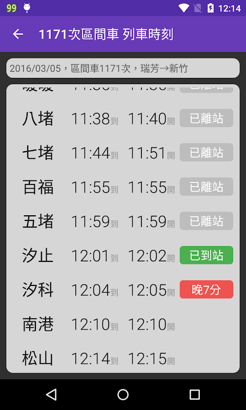 「列車動態」─ 可查看各班次列車誤點時間、到站資訊