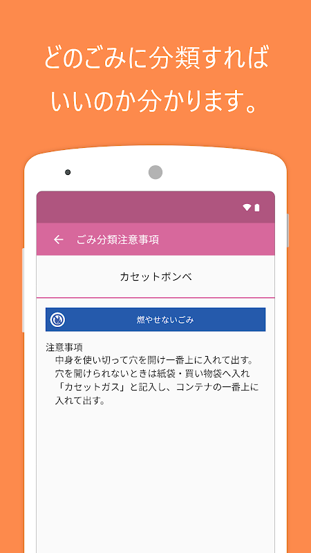 そんな時はごみ分類検索が便利です。ごみの名前を検索するとどのごみに分類すればいいのか分かります。