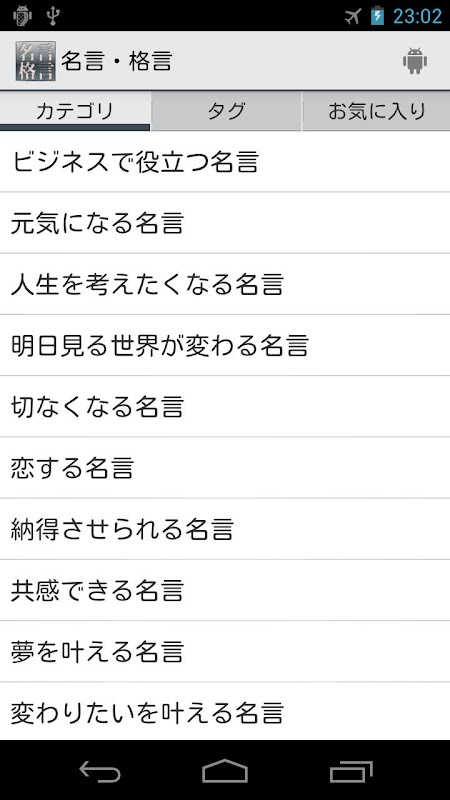 わかりやすいカテゴリわけで、恋する名言から成功する名言まで完全網羅。