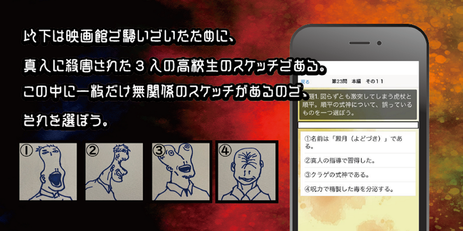 人気マンガ・アニメ『呪術廻戦』クイズアプリの決定版!
