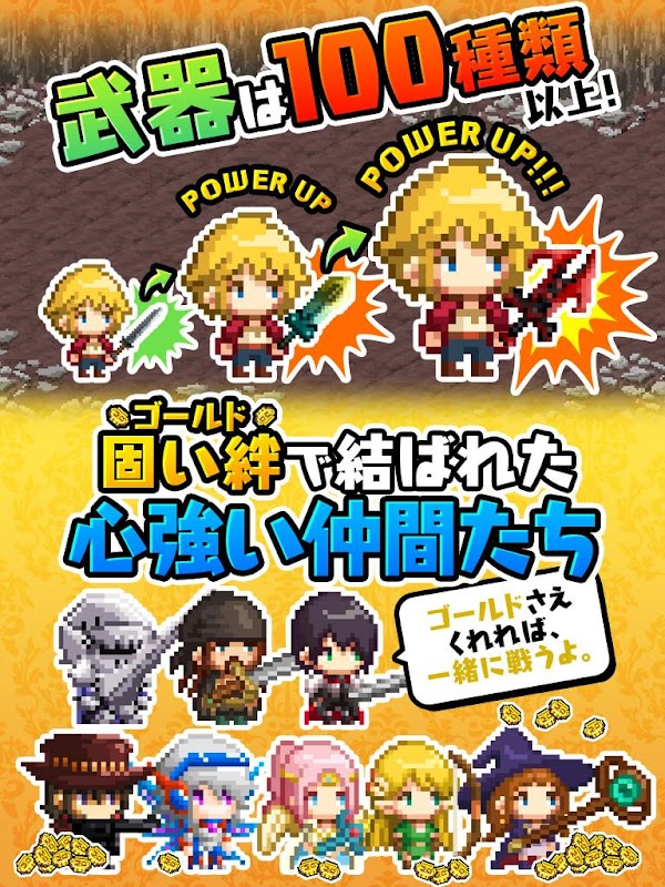 【美しい女神のために、モンスターを倒して、稼ぎまくれ!】 タップで簡単操作!武器、スキル、仲間でどんどん強くなる! 無料で遊べる、爽快タップバトルRPG!!