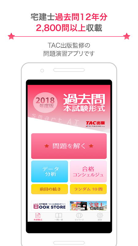 宅建士試験の過去問題演習アプリ!TAC出版書籍の過去問を12年分!全問題数2800問以上、本試験・一問一答形式の演習!TAC出版独学道場生は全無料