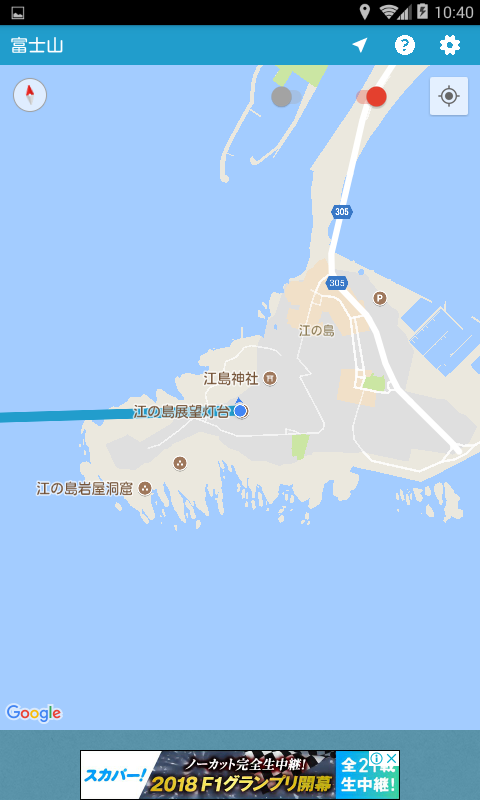 Depuis la carte une ligne droite a été établi conformément au mouvement du smartphone au Mont Fuji va tourner, vous pouvez facilement voir cette direction.