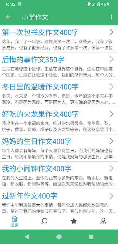 1、此应用收集了包括一到六年级学生写作时需要参考的作文案例