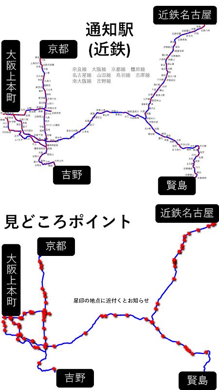 小田急・近鉄・中央線・成田方面・関西空港方面沿線の駅と見どころ通知機能を持ったアプリに発展しました。