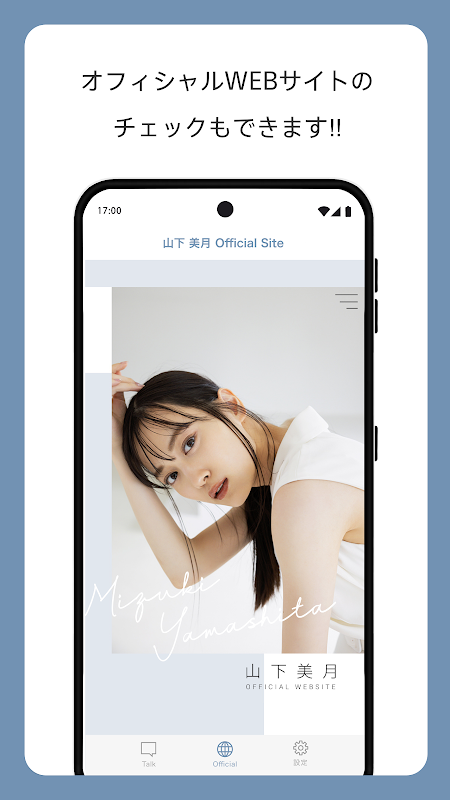Ceci est l'application officielle où vous pouvez recevoir des messages de Mizuki Yamashita ! Vous pouvez également envoyer des lettres de fans et parcourir le site officiel !