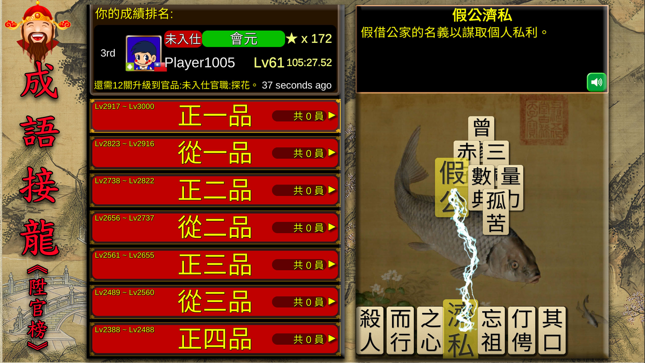 Venez relever le défi de [Idioms Solitaire-Promotion List] En plus d'améliorer votre connaissance des idiomes, essayez de voir de quel rang de dynastie Qing vous êtes le plus capable avec vos connaissances?