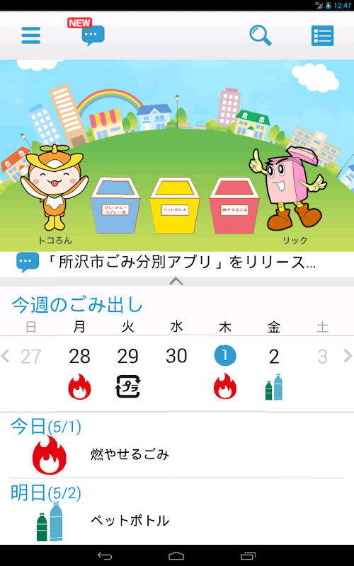 「収集日カレンダー」、「ごみ分別辞典」、「アラート機能」、「よくある質問」や「問い合わせ先」、「市からのお知らせ」情報など、便利機能満載の所沢市公式アプリです。
