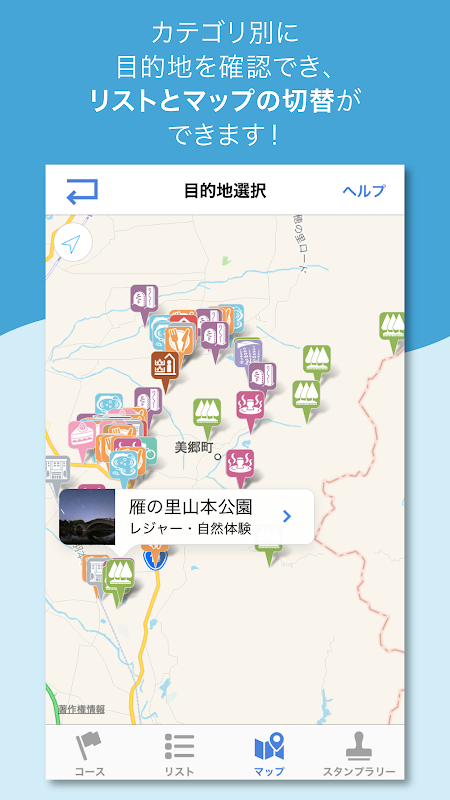 Cette application est l'application de navigation touristique de la préfecture d'Akita, Misato-cho.