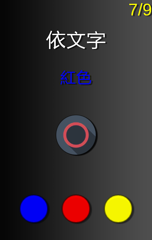 開始遊戲後,畫面會隨機出現"依顏色"或"依文字"的指示,