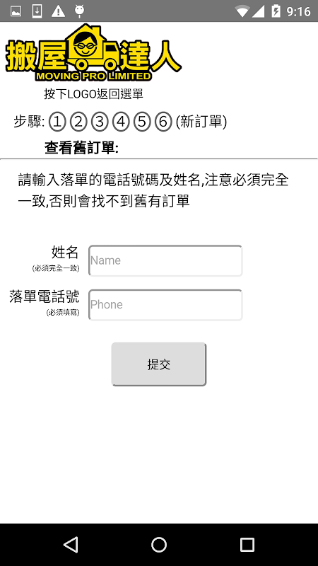 本APP可落單,可以查詢以之前落過的單,即時計算搬屋、運輸的費用,按照距離及搬運的貨量作出報價,簡易地使用我們提供的運輸服務。