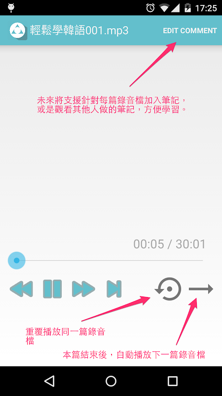 在手機或平板上,提供一個簡潔的方式選取教育廣播電台上,想要學習的語言教學節目,方便隨時收聽。