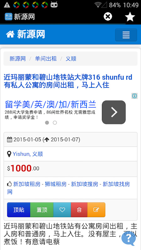 Singapore new source network, Singapore's first Chinese classified information website.