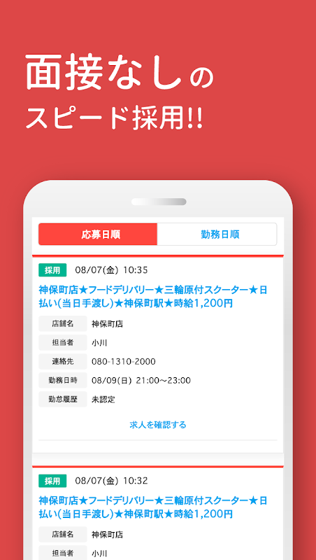 日払い・単発の配達アルバイトならショットワークスデリバリー 1.0.8
