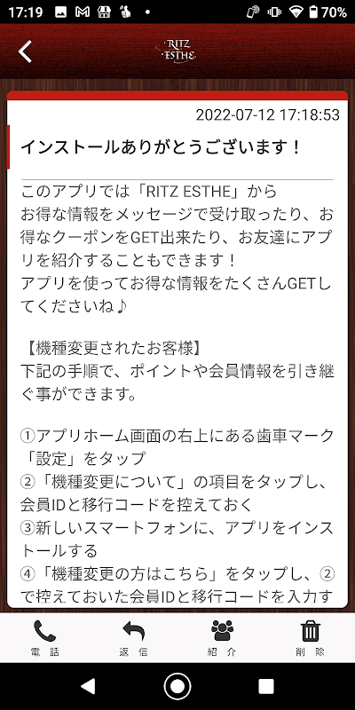 Avec cette application, vous pouvez utiliser pour recevoir et fonctionnalités utiles des dernières informations du Ritz esthe.