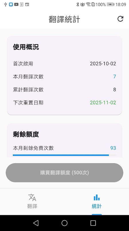 Quotas de traduction supplémentaires disponibles (500 traductions/environ 1 USD)