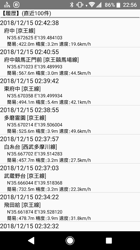 位置情報を取得した結果から最も距離の近い駅とその周辺駅を表示します。