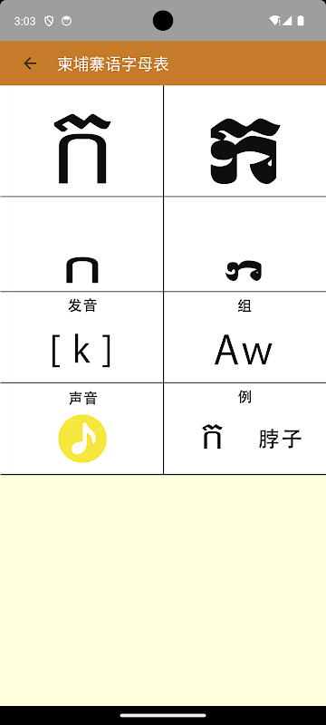 Cette application est utilisée pour apprendre la langue khmère (cambodgienne) en chinois.