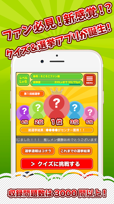 全国のファンとクイズで対戦!総選挙で推しメンをランキング1位に押し上げろ!