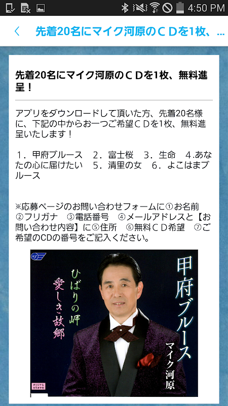 C'est l'application officielle du chanteur enka [Mike Kawahara] qui travaille également à l'écriture de chansons.S'il vous plaît utilisez-le!