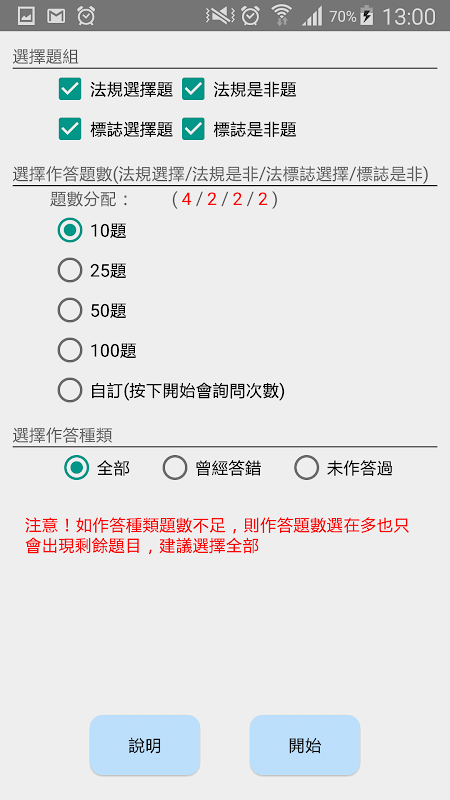 讓您透過您所想的方式,來考試,可以選擇題組、題數、種類等方式考試,讓您想怎麼考就怎麼考