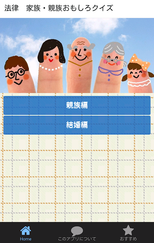家族や親族についての法律を、楽しみながら学べるクイズにしました。今後も問題を追加してバージョンアップの予定です。保存のうえ、繰り返しお楽しみ下さい。