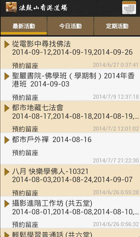 - 行事曆 :以總匯形式顯示道場每天的活動