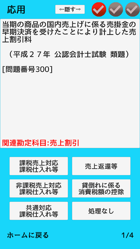 Une application standard pour les comptables et les débutants en droit de la taxe à la consommation! Vous pouvez apprendre la loi sur la taxe à la consommation de manière ludique et efficace dans le temps intermédiaire comme un jeu de quiz!