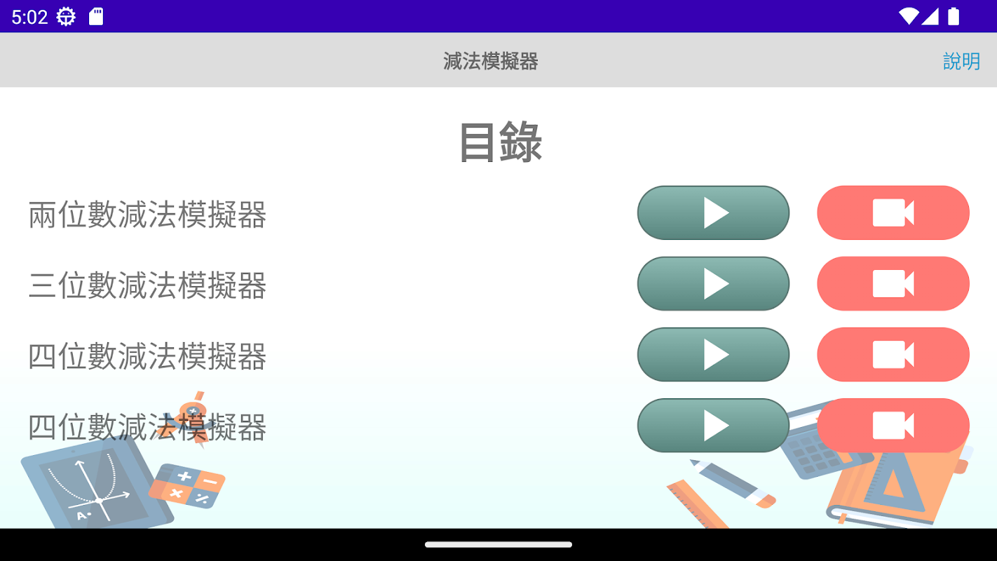 Le simulateur de soustraction est une application de calcul de soustraction développée par "Mingchuang Education · New Asia Publishing House". En fournissant différentes formes de simulations de soustraction, il est possible pour les élèves du primaire de revoir différents types de soustraction à la maison.